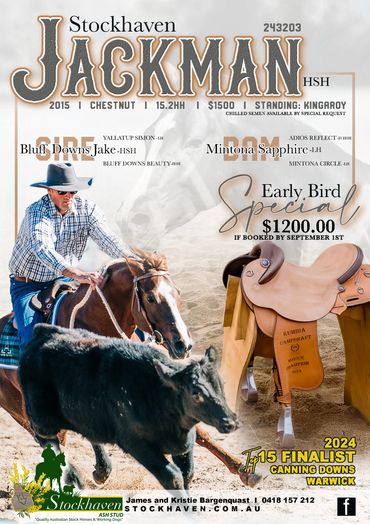 Jackman is a rising 10 year old Stallion by Bluff Downs Jake out of Mintona Sapphire.